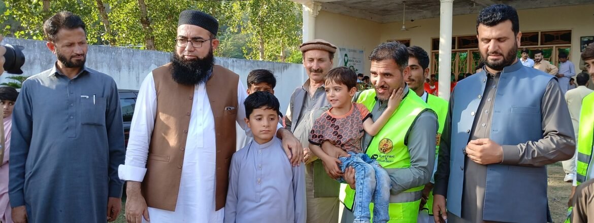 This winter, MJ Solar Solutions took a heartfelt initiative to distribute winter kits among the Buner flood-affected families. Our CEO, Abdul Qadir Jilani, personally met Azan — a courageous young boy who lost his entire family in the floods offering love, encouragement, and prayers for his bright future.